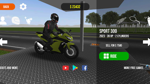 Game inspired by real-world motorcycles. Ride motorcycles doing wheelie, stunts, throttle with rev-limiter, drift, burnout, etc.