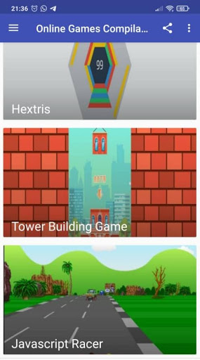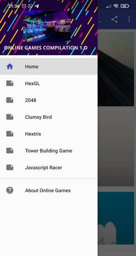 This app is a compilation of several open-source games online. Which is consists of HexGL, Tower Defense,