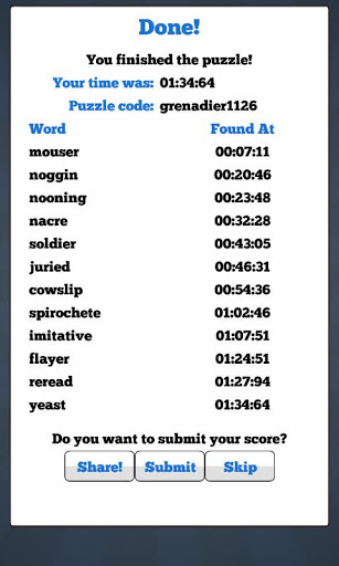 - Blitz: A twist on the classic - only one word is shown at a time and you can ONLY find that word while it is active.