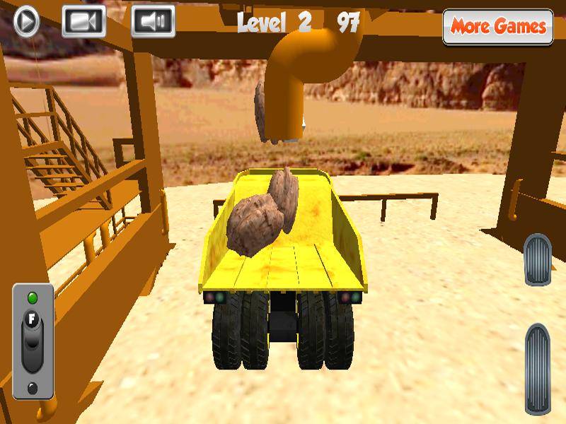 - Control your mining truck with an on-screen steering wheel, acceleration and brake pedals