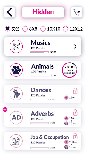 Play more and more levels and win Stars and Diamonds and amazing winning prizes. Using the stars and diamonds, unlock the new Subcategories and get some awesome winning prizes. A beautiful setting screen, You can enable-disable some features, Share app, and complete achievements.