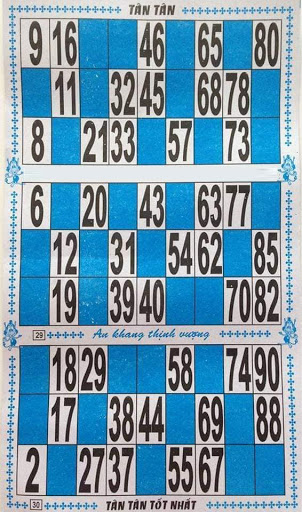 Game rules: The table owner will chant random numbers from 1 to 90. If you have all 5 numbers in the same row, you will win. And say "Finished".