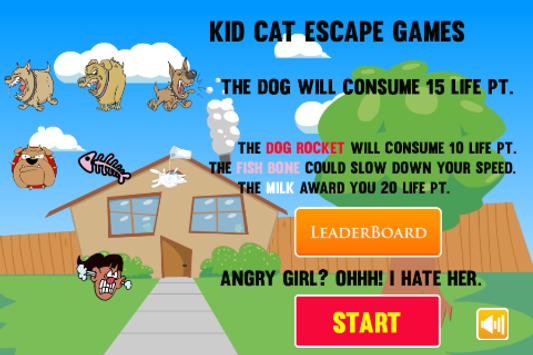 For the kitten or toddler cat in This games app look like simons cat ,kitty cat or siamese cat which talking together for escape from many dogs.