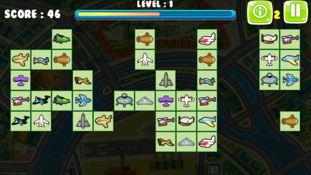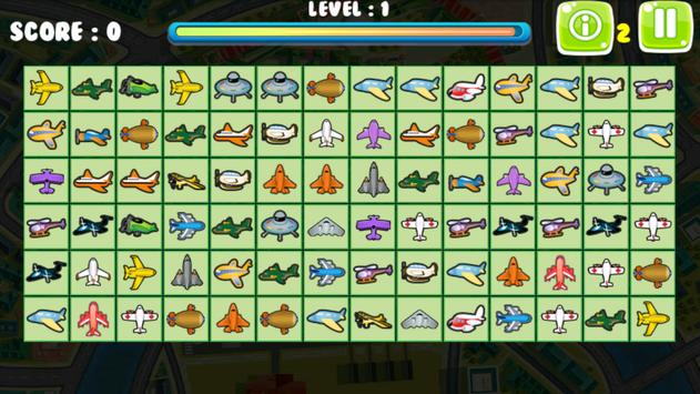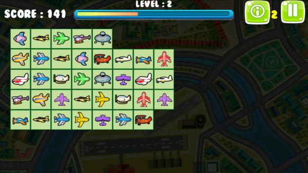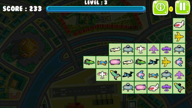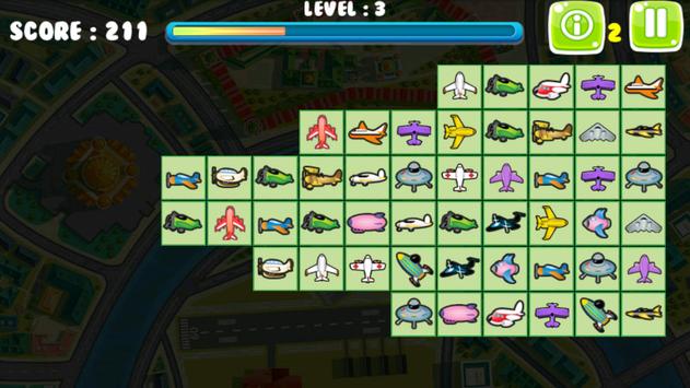 There are many kind of colorful modern airplane, balloon such as, Boeing 777, F18, F104, and super sonic aircraft. Players have to connect 2 same type off airplane to make them disappear. The condition is 2 same-type-airplane must connect each other with less than 3 line.