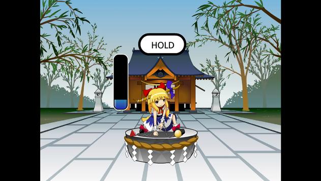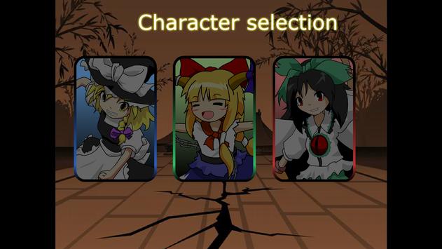 You can choose from three different characters; Marisa, Suika, and Utsuho. You have to hit the button with the right timing three times to break in half the Hakurei Shrine and if you gathered power enough you can break the world.