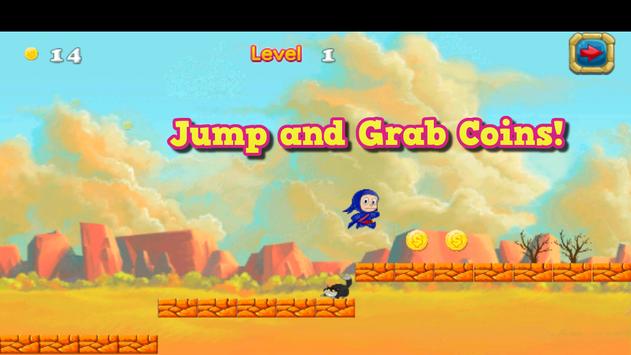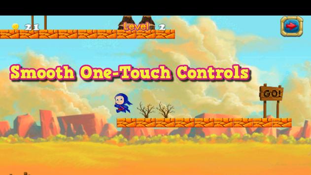 Have fun in the best Hattori ninja running adventure with Ninja Jump Hattori Run 2D game today! Wondering how Hattori become a ninja? This is the tough training all ninja go through when they become a Real Ninja! Help Hattori-kun to go through all the hard challenges. And one of it is speed! Fast running is the toughest level of all. Help superhero hattori dash through all missions and levels! Be the best ninja today! Ninja Jump Hattori Run has up to 90 interesting levels and amazing graphics. With the one-touch controls, this game makes it easy for all players. Enjoy the adventure with Hattori-kun today!
