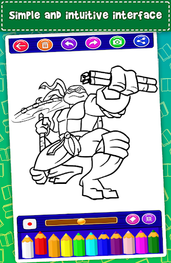coloring the Ninja with Turtles super heroes cartoon game book of the mutant monsters is a colorful, simple and funny teen age coloring and drawing cartoon game to develop creativity for boys and girl and also everyone.you will enjoy it .