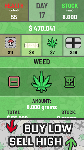 Buy cheap and sell high - it’s just like a real legal business. But this is dangerous & illegal, so your heat will rise every time you make a deal. If this gets too high, try not to move any drugs a few days. The drugs you can sell are Weed, Xanax, LSD, and Coke. This means that you can become the ultimate ganja dealer in a weed dealer game or a drug lord moving all sorts of different drugs.