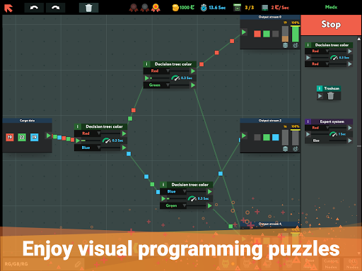 Drag objects around your screen with a mouse! Connect them with lines (oh yeah)! Try. Fail. Optimize. Try again. Then press “Release” button and see that sweet pieces of data flow smoothly through your screen.