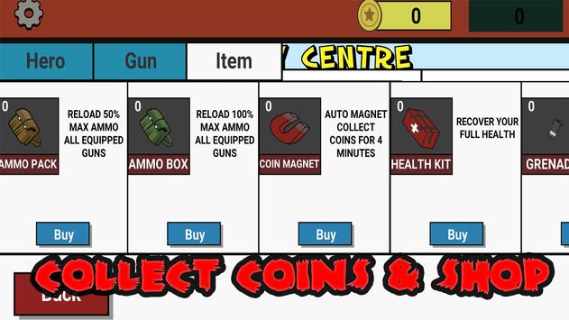 Collect the coins and other items to earn cash and buy character, weapons and other items with your cash. Survive from the city that is full of zombies.
