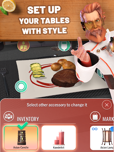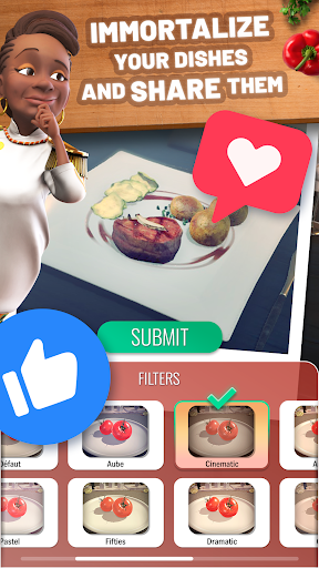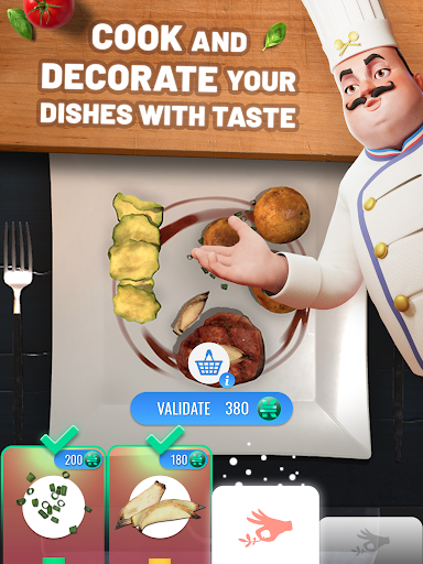Realistic and polished renderings like you've never seen in a cooking game... Appetizing ingredients, cut-outs, finishing touches, breathtaking backgrounds, an almost infinite choice of crockery and tableware. Have fun customizing your restaurant to your image!