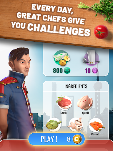 Charismatic chefs from around the world entrust you with missions to put you to the test. Each one with his/her own taste, criteria and personality. Take up their challenges by creating dishes that meet their requirements!