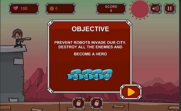Defend your city and unlock multiple levels as you explore the futuristic world being overrun by robots! Become a hero in this shooter arcade game for free as you destroy the enemies.