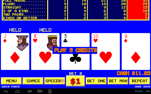 Play realistic video poker on your Android phone or tablet without betting your hard earned money.