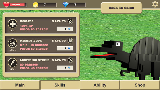 Fight enemies and gain experience, level up your pocket dinosaur and unlock new abilities.