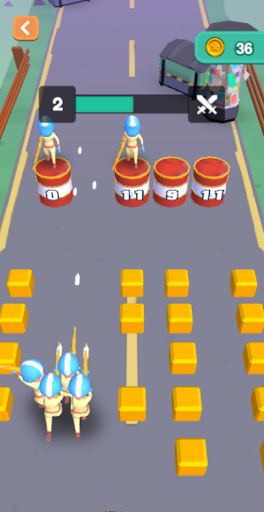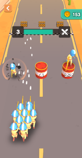 Join Clash 3d is an interesting arcade game. It mix avoid, shooting, gun, collect, and monster elements. This is a very funny game with an easy method. In the beginning, you have only one soldier, you have to blow the barrels and collect others. In the meantime, pay attention to avoid the obstacles, they will lose your soldier. In the end, there will have many monsters rush out of caves. To beat them, you must have enough soldiers. Do not forget to upgrade the soldier's power.