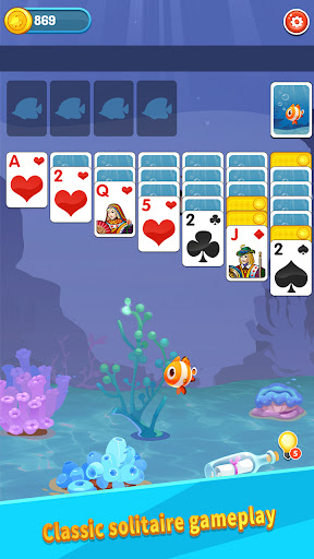Royal Solitaire Fish uses only one deck of cards for the game, a total of 52 cards, these cards face up, arranged in eight rows. Create four stacks of cards by moving the cards in the following eight columns: