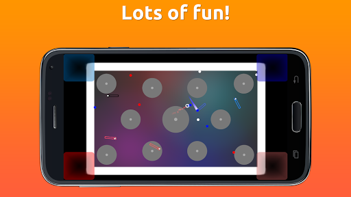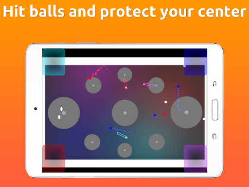 Tap your button to rotate your paddle. Hit balls to change them into your color and shoot them at your friends. Each ball you hit gives you points. Try to get more points than your friends.