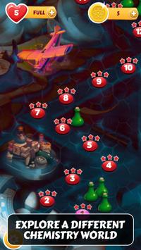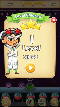 - Match at least three flask balls of the same color to pop the group and clear the screen