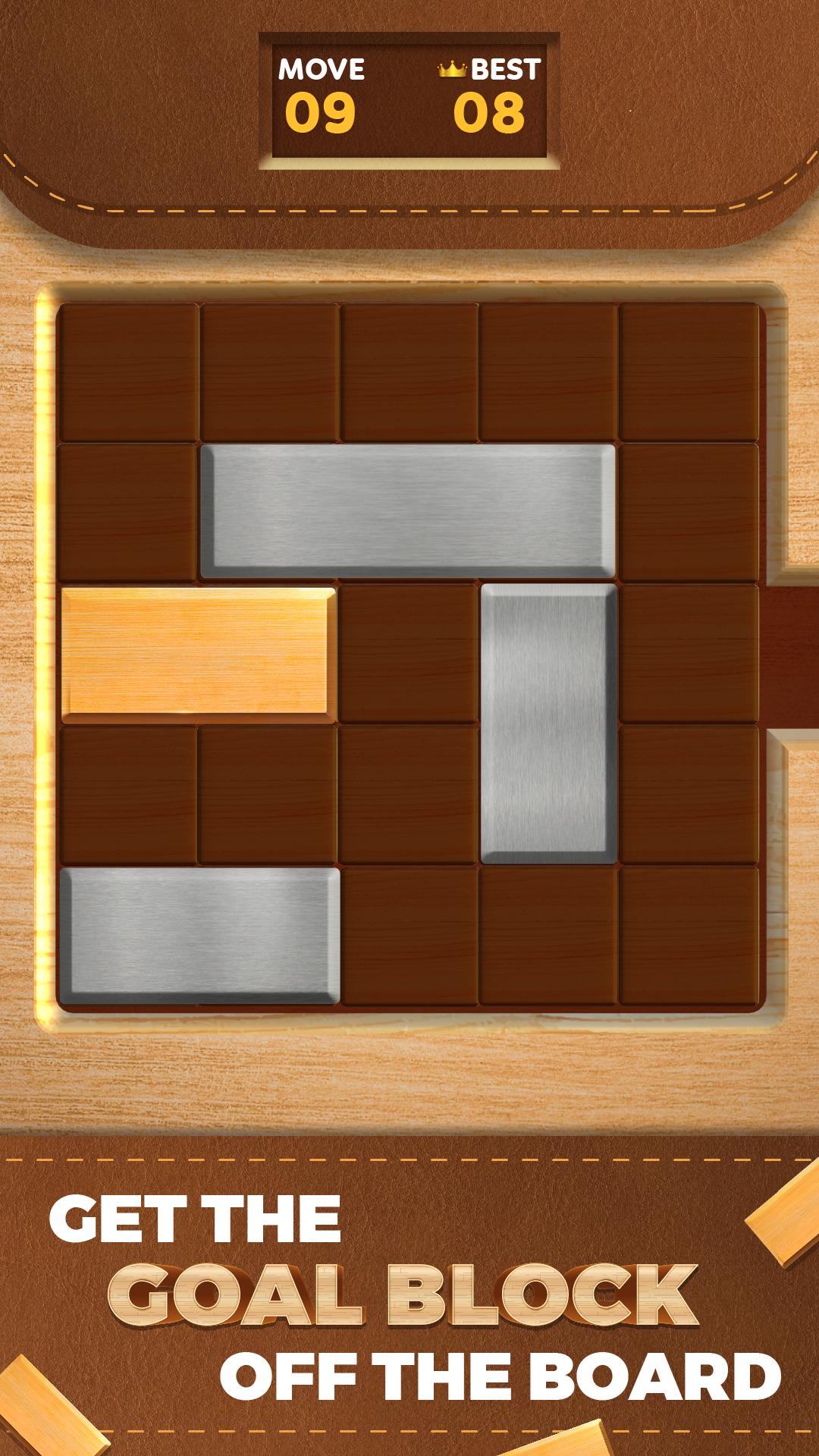 - Slide the silver blocks on the board so the wood block can slide off the puzzle.