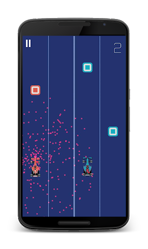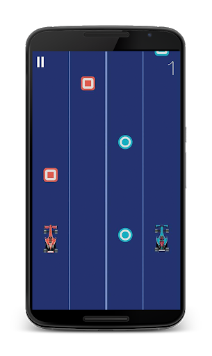 Control the red car and the blue car at the same time. Collect all the circles and avoid the squares on the road.