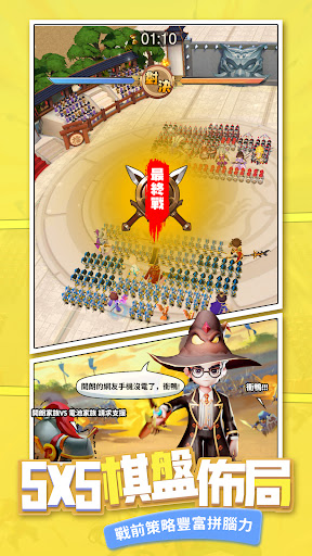 無論是群雄逐鹿的競技場、還是過關斬將的推圖、試煉之城,操作簡單盡享策略的樂趣!快約上朋友一起帶兵出征對決吧!