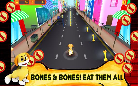 EARN SCORES AND BONUS. Evade capture and run as far as you can while collecting scores. This game calculates how far you have gone and your scores. Collect bonuses and eat as many golden bone treats as you can!