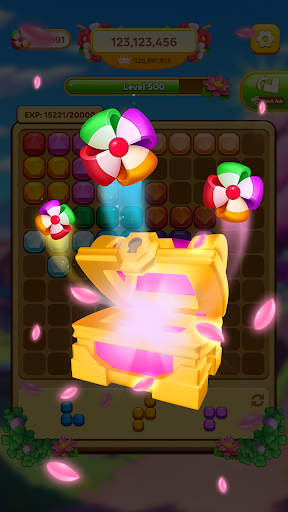 Blossom Block Blast maintains the classic mechanics of popular wood block puzzle games. Placing the block with the whole line vertically or horizontally will cause the block to vanish and grant you experience points, much like playing another block puzzle game. You will lose and be prevented from moving on to the following level if your board is already full and you are unable to add any more blocks. Gather gems as you go through the levels so you can use them to purchase beneficial boosters. You may also use boosters throughout the difficult stage if you need professional assistance.