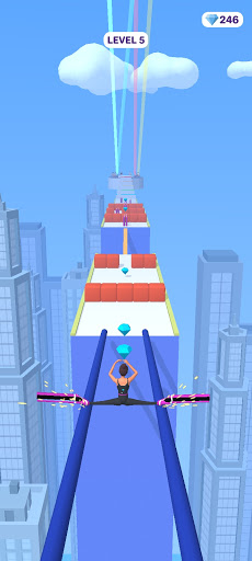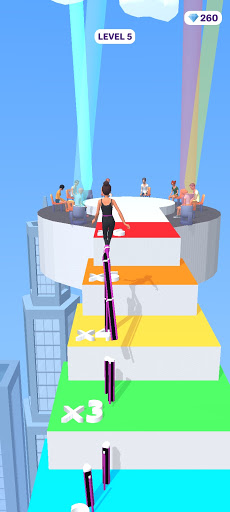 Compete with your friends, whose heel is higher and who has more coins collected on the way through the game. The way to play the game is to swipe left and right to move the character that is automatically moving forward, and if you can reach the goal by picking up a piece of stick that is falling down the road, stretching the stick, or collecting jewels, you can clear the stage.