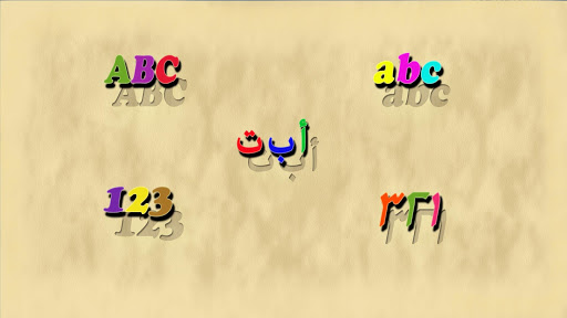 Help the baby learn the english capital alphabets, english small alphabets, arabic alphabets, indian numbers and arabic numbers.