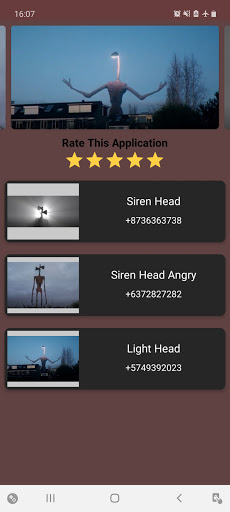 Finally the long-awaited release too, this is the siren head & light fake call which is an app that can make you look as if she is calling you or to surprise your friends. The moment to activate the content application can be when the situation is tense or when the dark sky has come, activate the siren head prank call or this light head call. This is not a real call, because this is just listening! Enjoy now with simulasi siren head call real and light head video call, to make fun chats as if calling your friends using the currently very popular simulasi panggilan headlight vs siren head. You or your friends will receive a siren head call prank that contains a siren head prank sound.