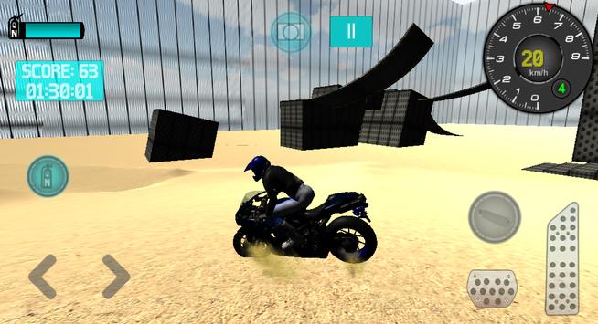 Jump over big hills, drive on crazy streets, be the best motorbike driver with this cool moto racing simulation game. The open world environment is designed for a fun driving experience with mountains, hills and streets. Jump high and earn points for your new best high score. Perform crazy jumps with full speed or crash with other motorbike driver opponents in this free game. If you like motorbike games this will be your new favorite motorbike simulator game.