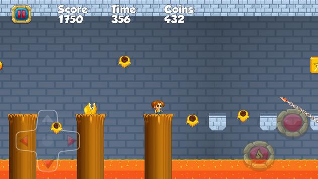 Our fearless adventurer will have to run and jump over obstacles, fight against Evil Marshmallows, Beak Monsters, Hedgehogs, Snails and many other Dragons and monsters. There are more than 20 enemies in this game. In every world, you have to fight two bosses enemies. They can beat you, but you must use your skills to win against them and get your prize.