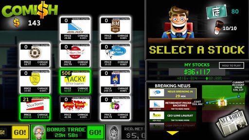 - 'My Stocks' Mode: Buy and sell stocks in 11 fictional (parody) companies