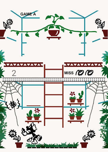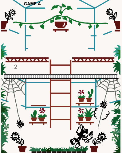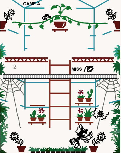 When a spider or inchworm reaches a flower, one miss is scored. The attacked flower withers and dies. One MISS mark appears. 3 MISSES and game ends.