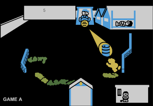 2. Press the left button (◄) to move to the exit or to avoid being discovered.