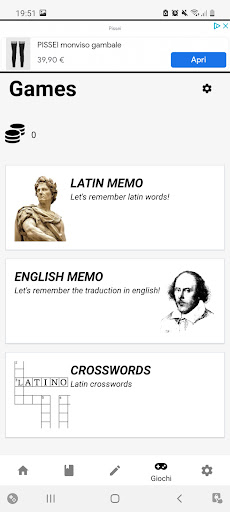 Useful app for learning the Latin language equipped with a dictionary and integrated conjugator, games with which to test yourself on the knowledge of Latin words divided into verbs, adjectives, pronouns, and nouns. There are also notes on all grammar and literature.