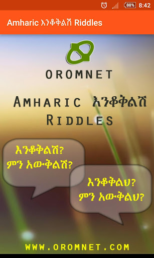 እንቆቅልሽ (Enkokelesh ) is equivalent to Riddle in English, almost :) Enkokelesh or Riddle is a form of guessing game that has been a part of the folklore of most cultures from ancient times. The App contains few Enkokelesh questions in Amharic language.