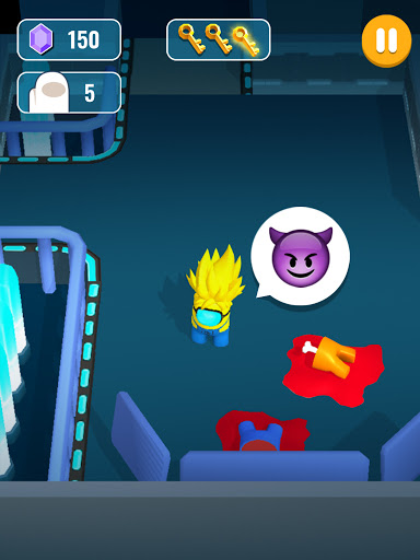 You will play a role as an impostor. Your mission is simple: Kill all the living crewmates in the spaceship, and escape through the vent to become the best imposter. Let no one survive.