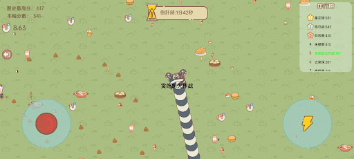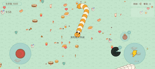 1. Control the joystick to move your little snake, eat the small colored dots on the map, and it will grow longer.