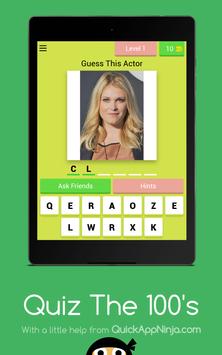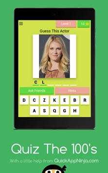 The 100 Quiz is one of a fun Movies apps without time limit . Prove to your friends that you are a true Films fan by guessing the Actors .