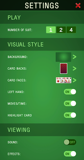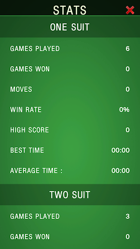 You can move cards with a single tap or drag them to their destination. You can either play the easy 1-suit games, or if you feel up-to the challenge, try your luck with 2-suit, or 4-suit.