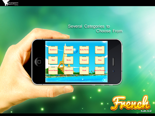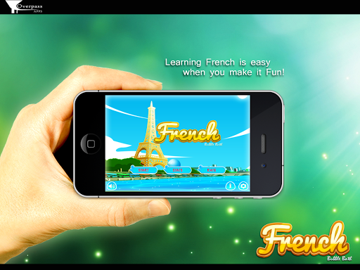 Learn French or at least keep up with your vocabulary with French Bubble Bath - a free French language game from Overpass Apps.