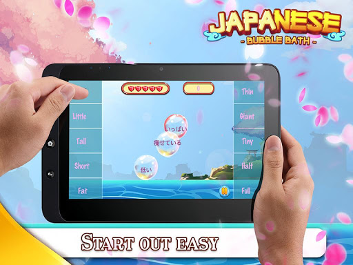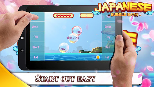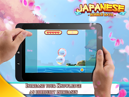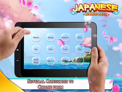 Japanese Bubble Bath includes 630 Japanese words divided into 63 challenging categories. Just tap on a bubble, hear the word spoken by a native speaker, and select the translation to pop the balloon.