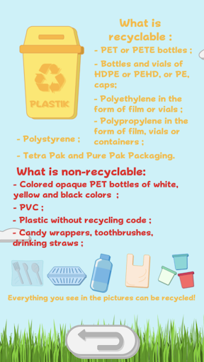 When playing, you will learn how to sort garbage the right way, find out what to throw out and in which containers! Remember and learn to break records! So far, only 4 containers are available, but soon .... very soon more containers and more garbage will be added, the game will become even more fun, which means that the