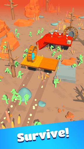 🗺️ Expand your zombie apocalypse vehicle to conquer the barren wastelands! Zombies run fast, so you need to run faster and push em all if they try to get on your raft!
