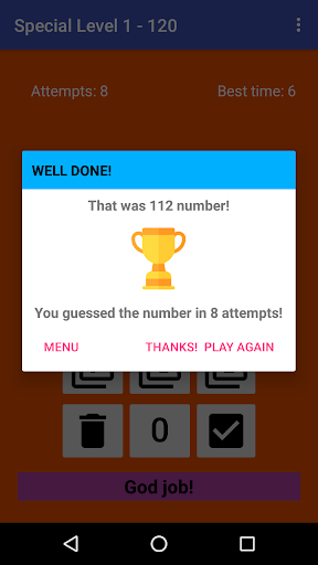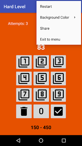 Guess the secret number in three different difficulty level and one special level. Can you guess the number under pressure of time? I think 10 seconds is a lot of time for you!