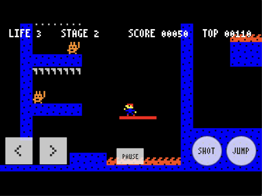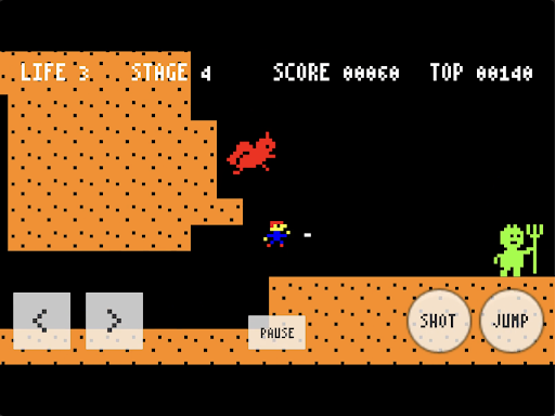A retro-style 2D shooting action game. Aim for the goal while shooting and defeating monsters. It's quite difficult, but if you do your best, you can defeat the boss.