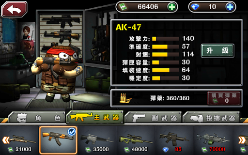 -In the course of level up, player can enhance the weapons power, stability, and speed, as well as equip sniper scope and grenade launcher.