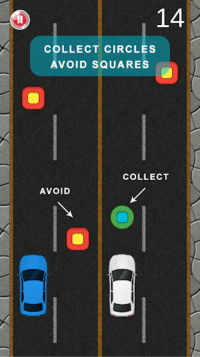 There are multiple cars out there along with goods and obstacles. Dash the cars go ahead, collect the circles and avoid the squares.